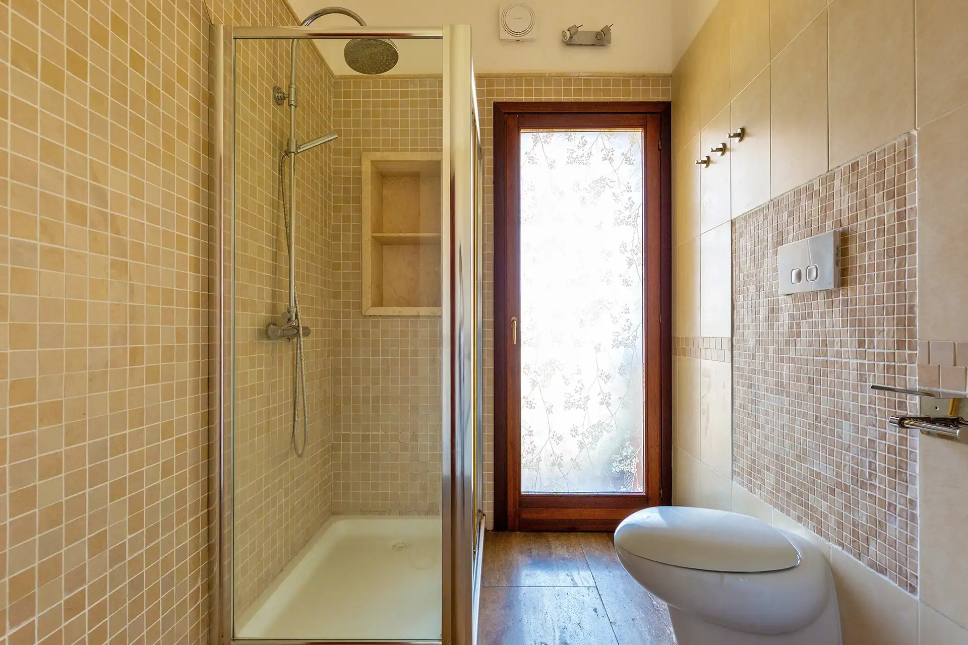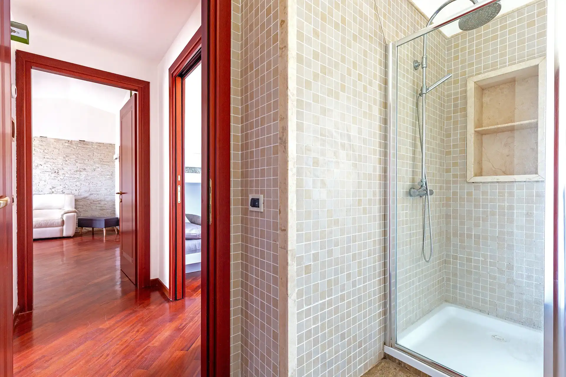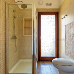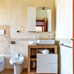 Bagno con ampia doccia, wc e bidet, aspiratore automatico umiditù, asciugacapelli e kit cortesia.