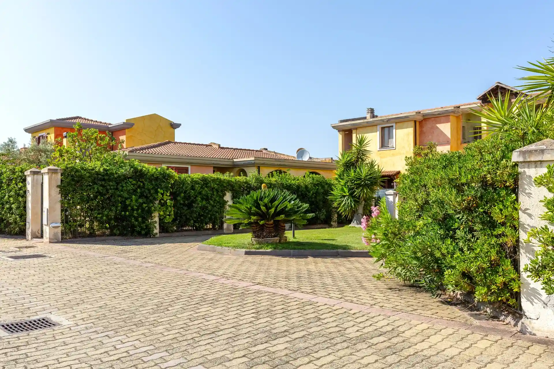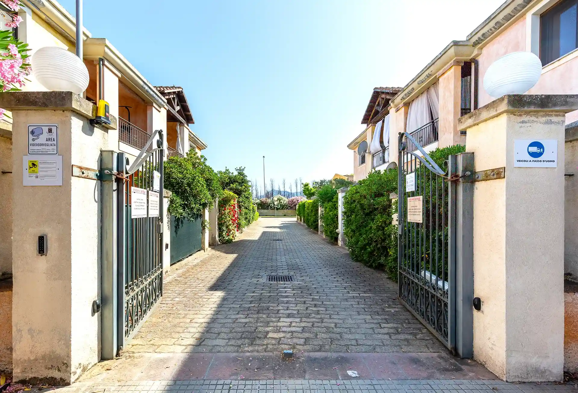 Si accede al residence attraverso un cancelletto pedonale oppure tramite un cancello automatico carrabile. All’interno del lotto è presente un posto auto privato numerato.