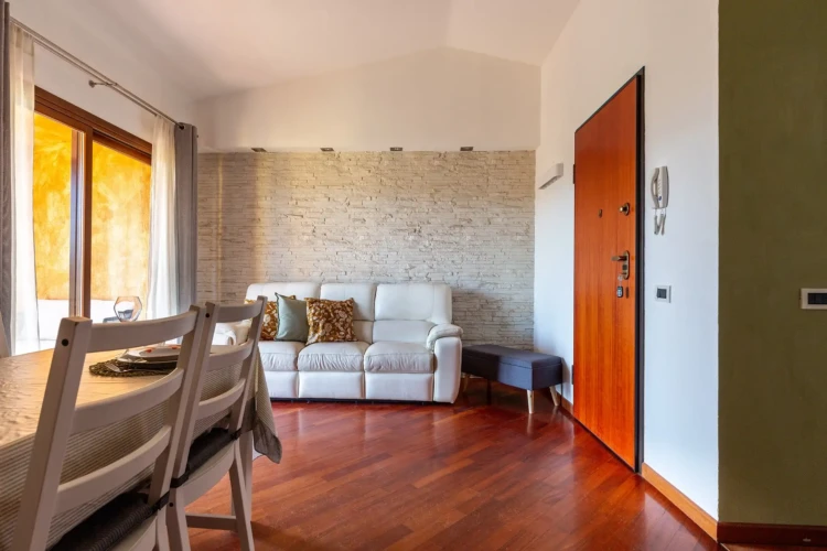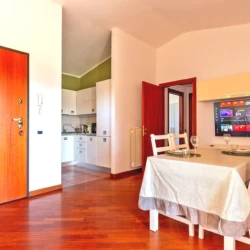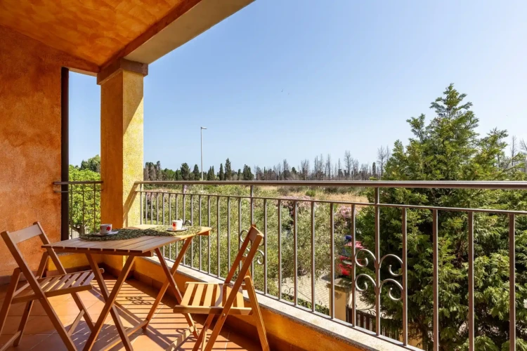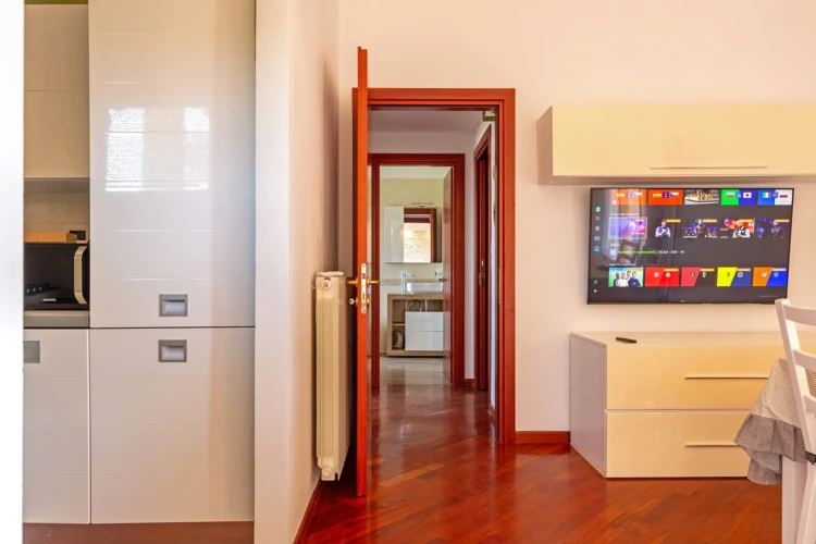 Gli spazi sono accoglienti e curati: un soggiorno con accesso diretto a un ampio balcone arredato, una cucina completamente attrezzata con pavimenti in parquet e tutti i comfort per sentirsi a casa.