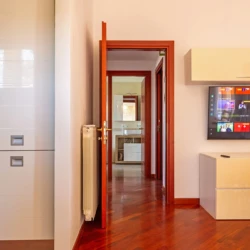 Pavimento in parquet in tutta la casa, eccetto bagno e cucina.